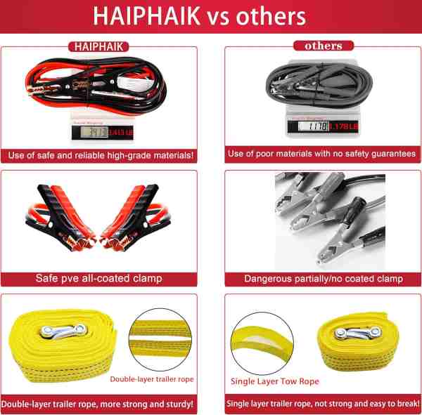 【Аварийный автомобильный комплект】: лучший автомобильный аварийный комплект для Европы 2026 года включает в себя необходимый ящик для инструментов, многофункциональную лопату, современные соединительные кабели (11,8 футов), инструменты для ремонта шин, тяговый трос, спасательный свисток, фонарик, перчатки и многое другое. Состоящий из 124 частей, он обеспечивает максимальную безопасность во время поломок или аварий. 【Соединительные кабели для аккумулятора】: соединительные кабели, сертифицированные UL, обеспечивают превосходную безопасность и надежность по сравнению с несертифицированными продуктами. Четыре больших зажима типа «крокодил» с изолированными губками с резиновым покрытием обеспечивают надежный захват. Усиленный корпус кабеля выполнен из высококачественного ПВХ-материала, обеспечивающего устойчивость к морозоустойчивому растрескиванию, предотвращение растрескивания и отсутствие спутывания! Прочный аккумуляторный кабель — ваш надежный спутник в путешествиях и походах! 【Набор инструментов для ремонта автомобиля】: этот удобный набор инструментов включает в себя 16 необходимых инструментов! Аккуратно хранятся все необходимые инструменты для экстренного ремонта автомобилей: гаечные ключи, плоскогубцы, молоток, тестер напряжения, магнитные отвертки с плоской головкой и крестовая отвертка, шестигранные ключи пяти размеров... Каждому инструменту отведено свое место. Прочный пластиковый корпус выдерживает давление. Компактный и портативный, храните его где угодно! 【Комплект безопасности для транспортных средств на дороге】: подходит для седанов, внедорожников, внедорожников, кемпингов, водителей грузовиков, мотоциклистов и других типов транспортных средств. Всегда будьте готовы к чрезвычайным ситуациям! Этот компактный автомобильный аварийный комплект легко помещается в вашем автомобиле и содержит необходимые инструменты, которые помогут вам путешествовать без забот. Это идеальный подарок-сюрприз для новых владельцев автомобилей или неподготовленных водителей. 【Портативная складная лопата】 Сочетает в себе практичность, универсальность и безопасность: лезвие лопаты, зубья пилы, открывалка для бутылок, кирка, гвоздодер, мотыга, компас. Полностью выдвинутая длина: 18 дюймов. Компактно складывается и легко помещается в сумке. В чрезвычайных ситуациях он может прокопать почву, чтобы освободить ваш автомобиль, или разбить окна, чтобы спастись. Если у вас возникнут какие-либо проблемы с продуктом при покупке, немедленно свяжитесь с нами. Мы окажем помощь! Мы стремимся улучшить качество вашего обслуживания клиентов!.